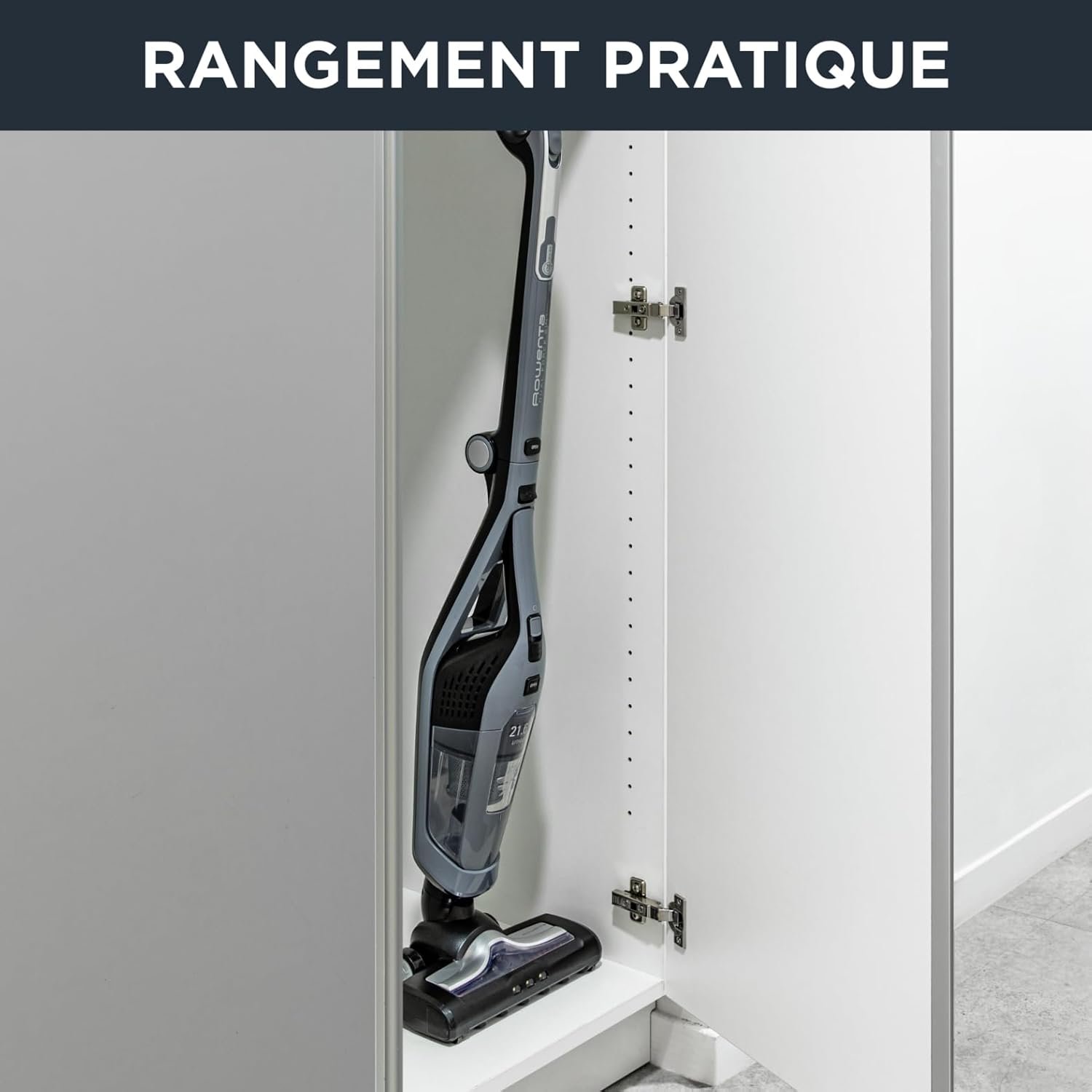 Avec ses 2,5 kg, sa poignée pliable, sa tête motorisée à LED et sa batterie 21,6 V annoncée à 75 minutes en position minimum, le RH6756WO vise l’entretien courant plus que le grand ménage. Les retours convergent sur l’essentiel : il est léger, maniable, discret en vitesse basse et convaincant sur parquet, carrelage et poussière quotidienne. C’est un modèle qu’on prend volontiers pour un passage rapide, sans avoir l’impression de sortir une machine lourde.