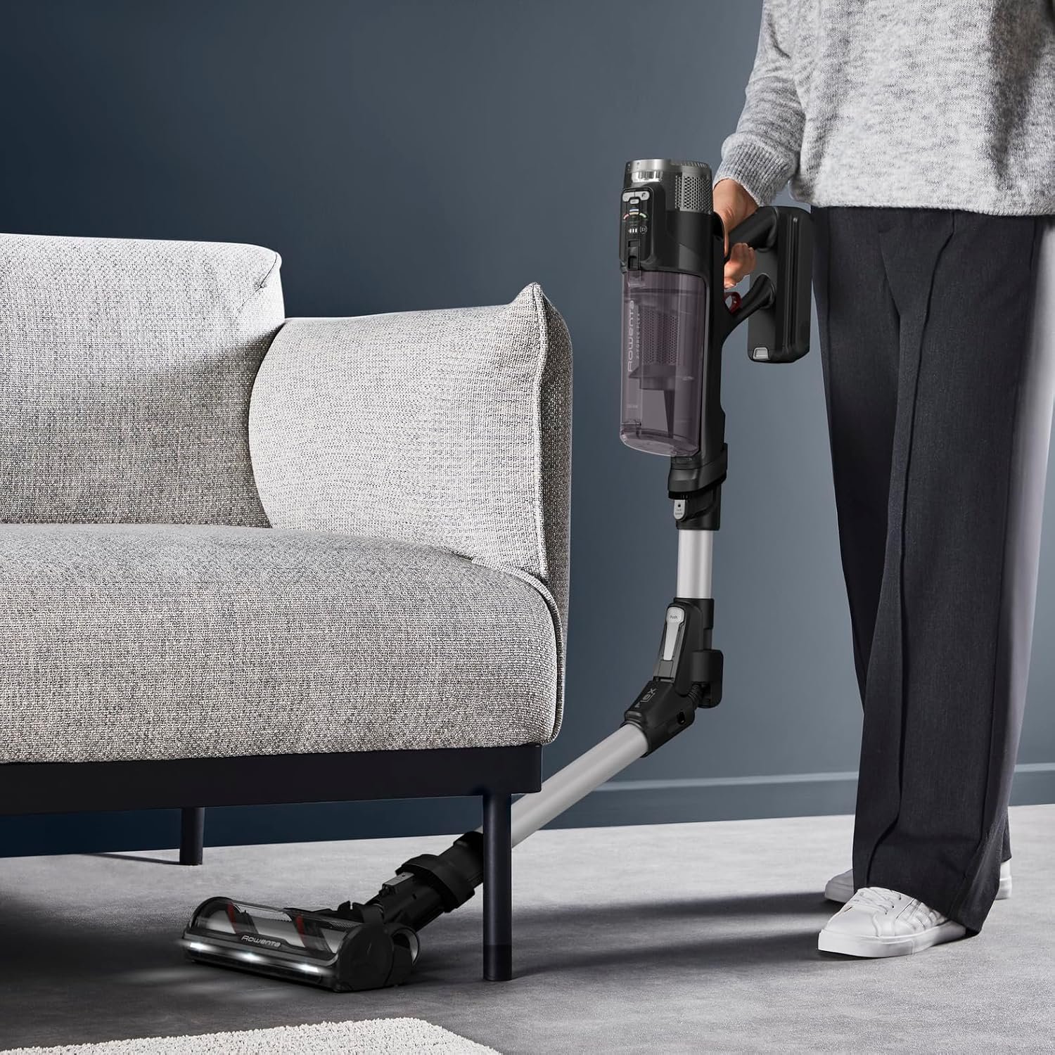 Rowenta X-Force Flex 13.60- Aspirateur balai puissant et flexible, pensé pour les sols variés et les meubles bas.