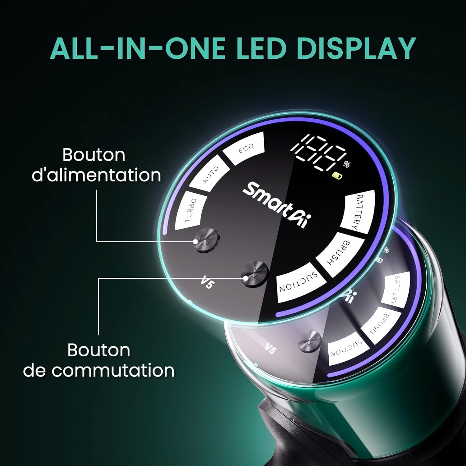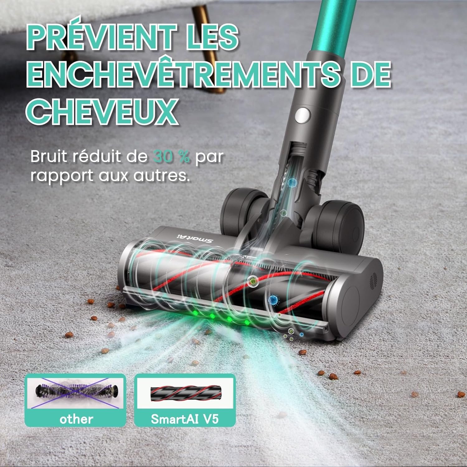 Aspirateur balai sans fil SmartAI V5 : puissant et endurant