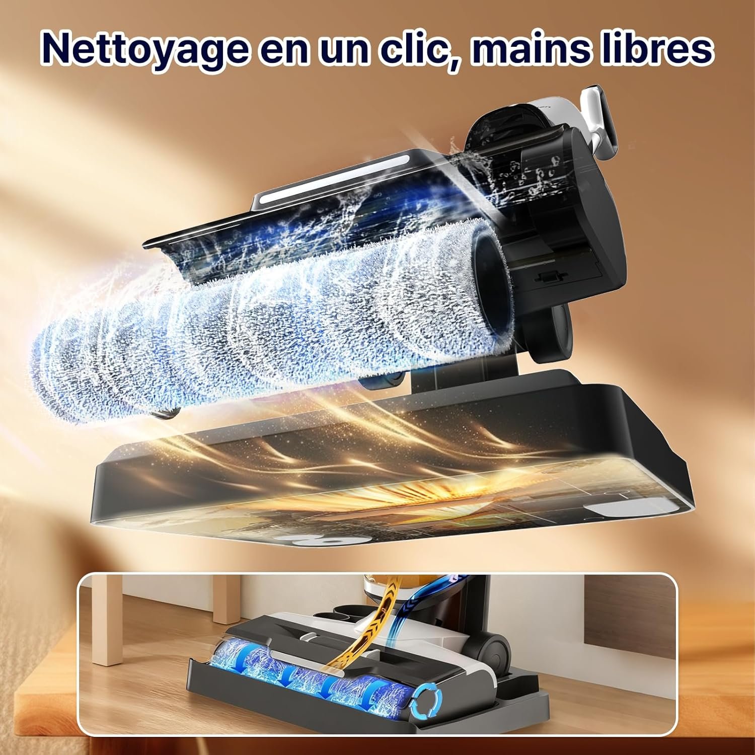 Le Hearten ne domine pas clairement sa catégorie. Il reste visible parce qu’il réunit les fonctions attendues sur un laveur sans fil accessible : aspiration et lavage simultanés, base d’autonettoyage, modes de nettoyage, affichage et guidage vocal.