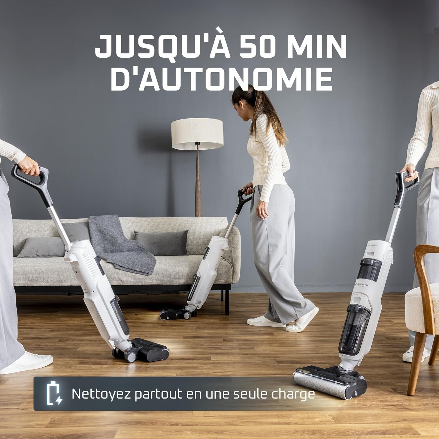 Le Rowenta X-Clean5 est un aspirateur laveur sans fil pour sols durs. Il remplace surtout le duo aspirateur + serpillière pour l’entretien courant, pas un aspirateur polyvalent pour toute la maison. Son intérêt tient à ce gain de temps en un seul passage. Sa limite est tout aussi nette : il reste cantonné aux surfaces lisses et n’efface ni les contraintes d’entretien ni les saletés les plus incrustées.